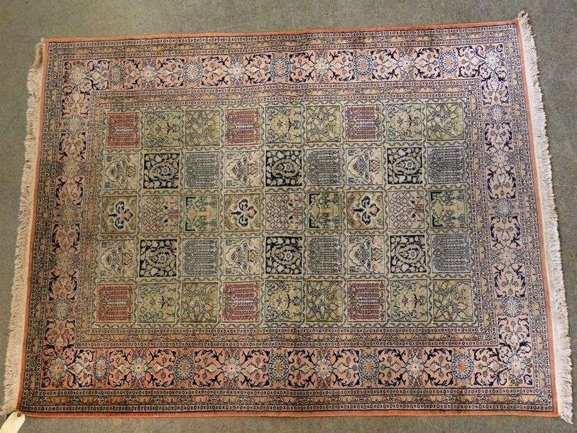 Tapis en soie a décor de caissons sur fond saumon