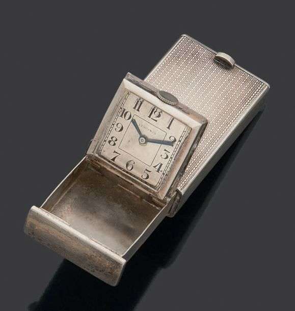 Cadran argenté, chiffres, aiguilles arabes, aiguilles feuilles. Décor de godrons.