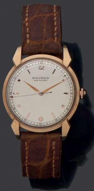 Cadran argenté, aiguilles Alpha et index bâtons or. Mouvement base Movado, Freq 18000 alt/h. Fond clipsé trot centrale.