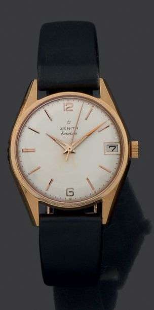 Horodate. Modèle homme en plaqué or. Cadran argenté, index et aiguilles dauphines. Mouvement base calibre 106 Freq 18000 alt/h. Boitier 2 corps fond vissé. Guichet date à 3h.