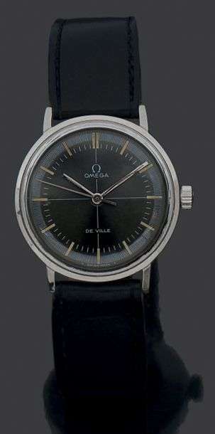 Cadran anthracite, index et aiguilles bâtons. Mouvement cal 600 Freq 19800 alt/h. Boitier monobloc. Trotteuse centrale.