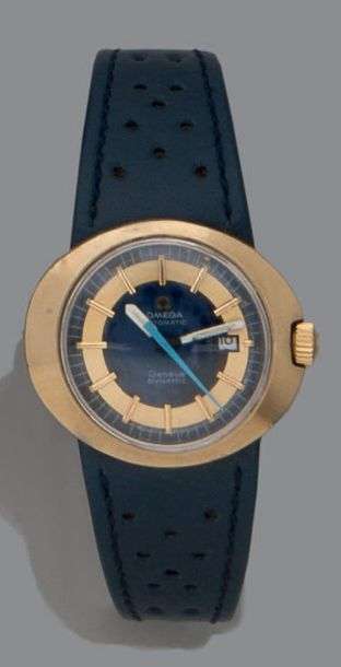 Dynamic Vers 1970. Modèle dame automatique en plaqué or. Cadran 2 tons or et bleu, index, aiguilles bâtons. Mouvement automatique Freq 21600 alt/h.
