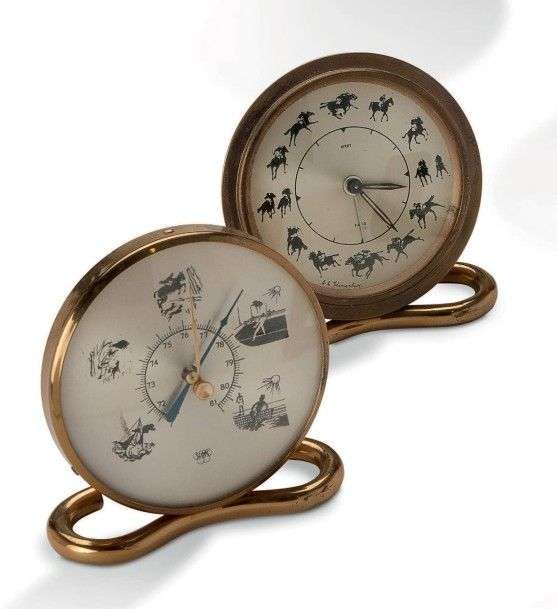 Ensemble pendulette réveil, baromètre.