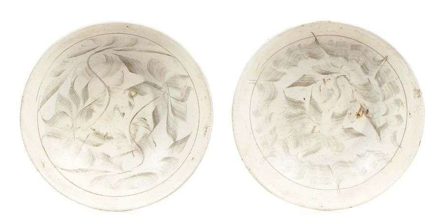 宋代 十-十三世纪 宋瓷刻花碗一对