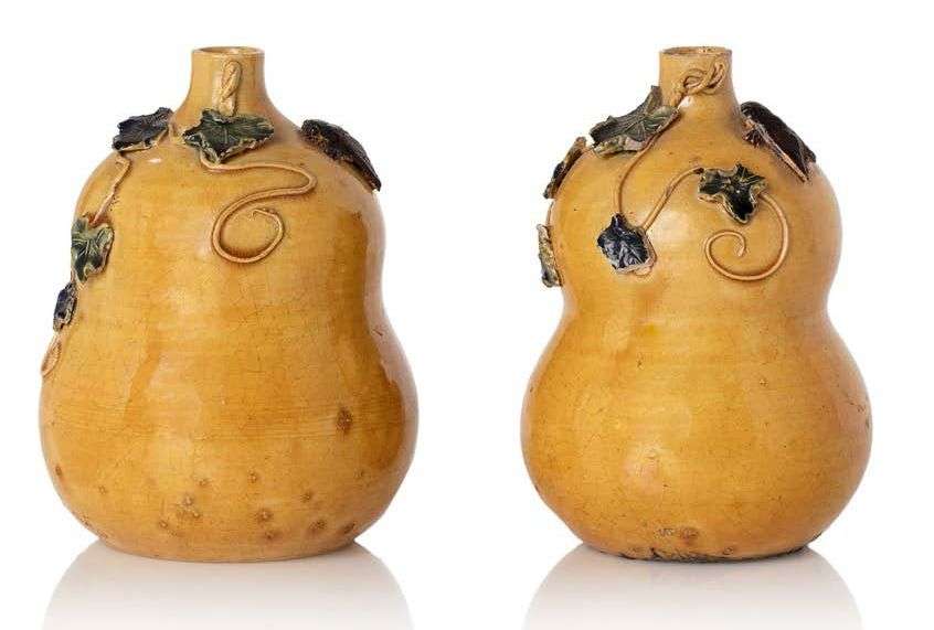 中国十九世纪黄釉葫芦形瓶一对