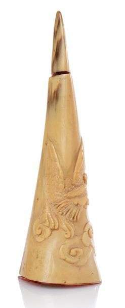 Flacon tabatière en bec de calao à l'imitation d'un ongle de mandarin sculpté d'un oiseau fenghuang.