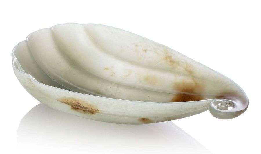 中国 十九世纪末 莲枝纹白玉杯