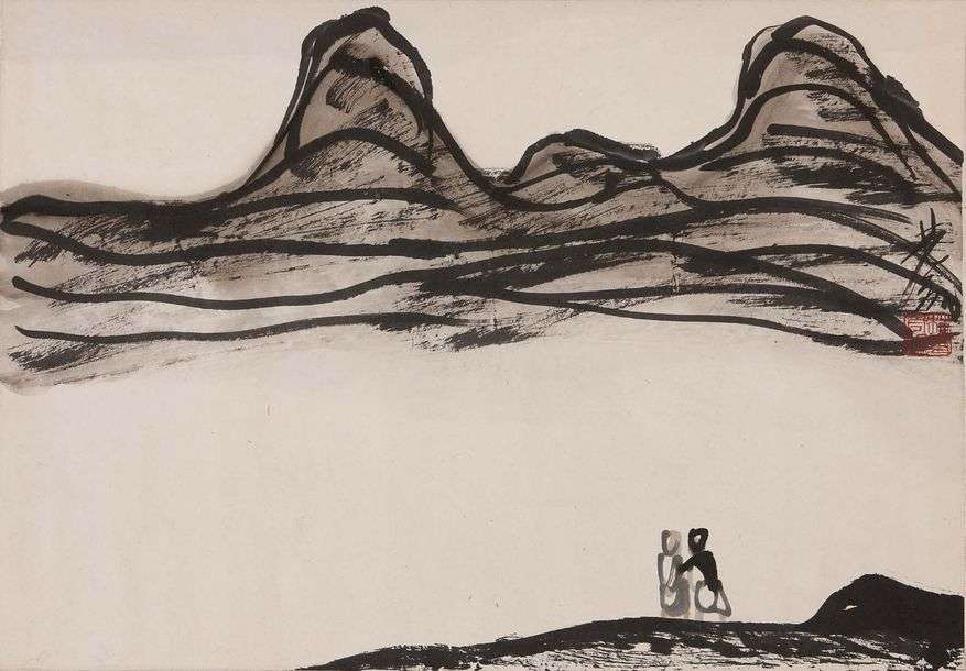 Encre sur papier, signée et marquée du cachet de l'artiste sur le côté droit