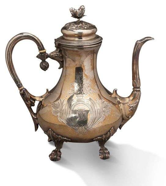 THÉIÈRE en argent armorié, bague en ivoire