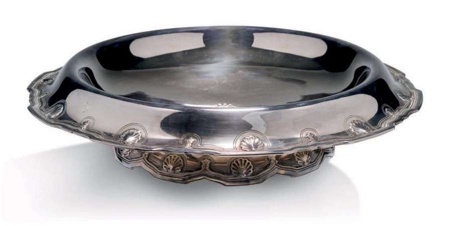 IMPORTANTE COUPE À DOUCINE en argent 925 millième à décor de filets rehaussés de palmettes et fleurons alternés.