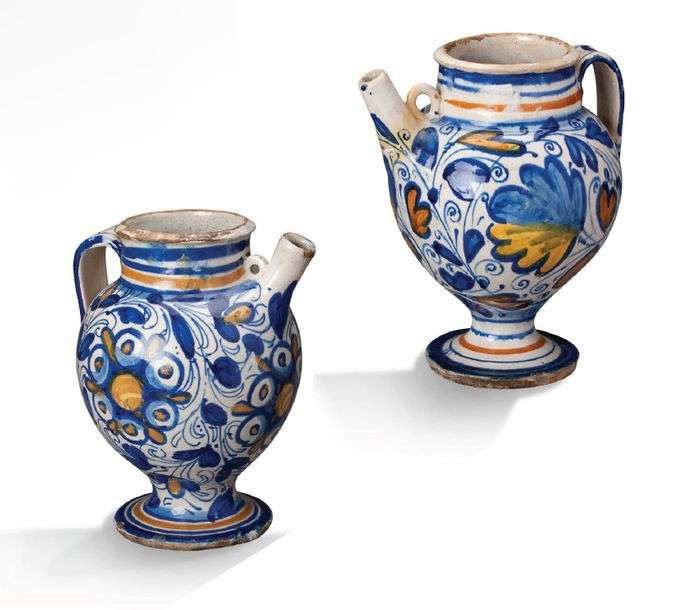 Début du XVIIe siècle. (Fêlures et manque d'émail restaurés) Modèle proche dans l'ancienne collection du Docteur Chompret (bibliographie 1946)
