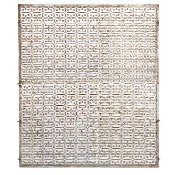 IMPORTANTE PAIRE DE GRILLES en fer forgé et riveté à motifs réguliers de f