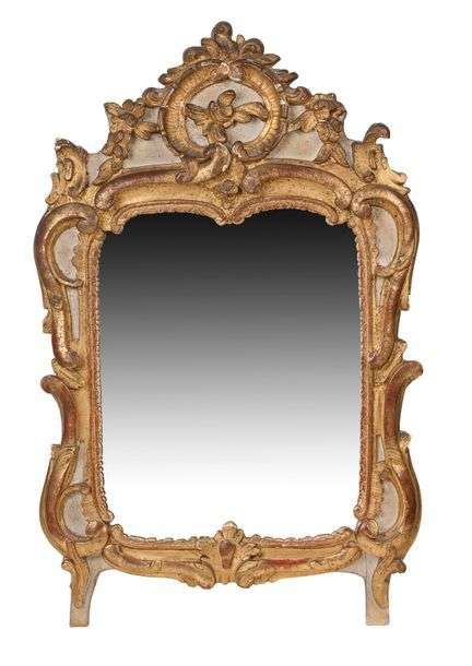 MIROIR RECTANGULAIRE en bois sculpté et doré à motifs de volutes, agraphes et feuillages.