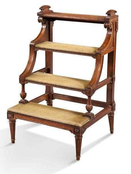 ESCABEAU DE BIBLIOTHÈQUE en bois naturel mouluré et sculpté| les marches g
