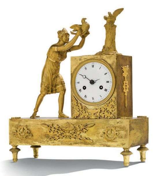 PETITE PENDULE en bronze ciselé et doré représentant Atala.