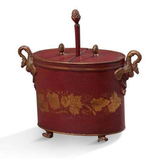 PETIT RAFRAICHISSOIR en tôle laquée rouge et or à décor d'une frise de pam
