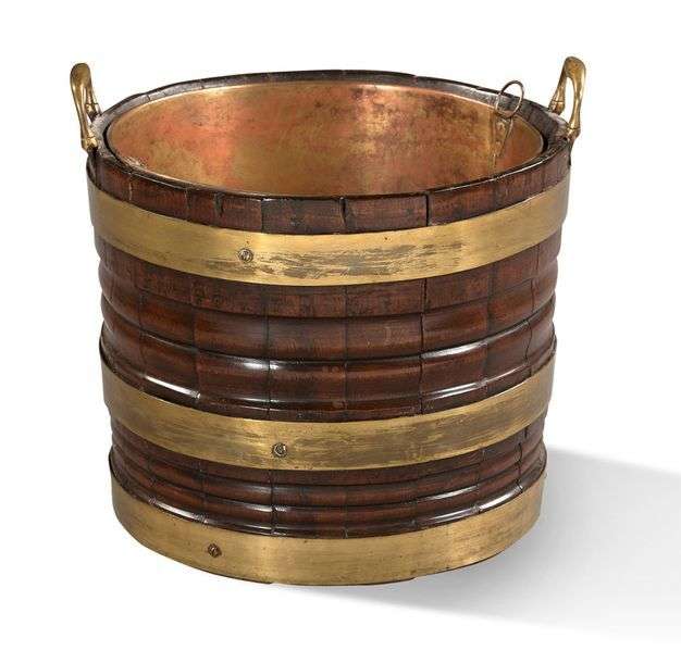 SEAUX À GRAIN en acajou mouluré et bandes de laiton doré deux anses.