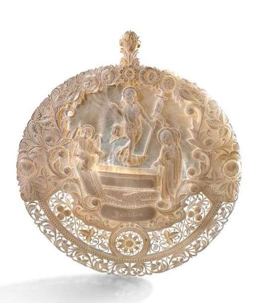 PLAQUE EN NACRE finement sculptée et ajourée représentant la mise au tombeau