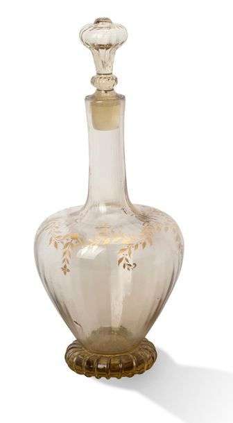 Carafe et son bouchon en cristal à décor or de feuillages