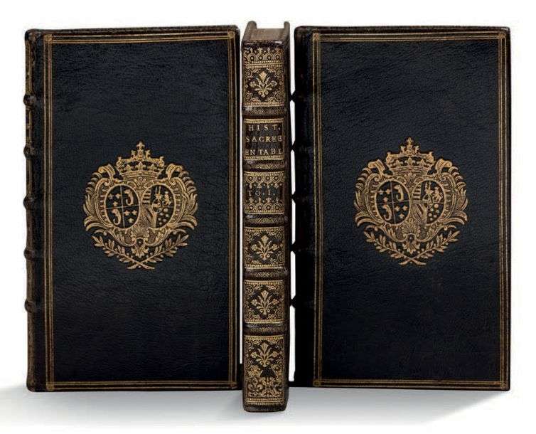 Paris, Charles de Sercy, 1670-1671- 1675. 3 volumes in-12 (152 x 84 mm). maroquin bleu nuit, triple filet doré en encadrement sur les plats, armoiries au centre| dos à nerfs richement orné et en queue la roulette dite «au dauphin».
