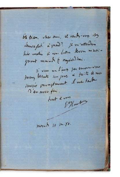 Hollande enrichie d'une lettre autographe signée et datée de Flaubert, format in-8 recto sur papier bleu.