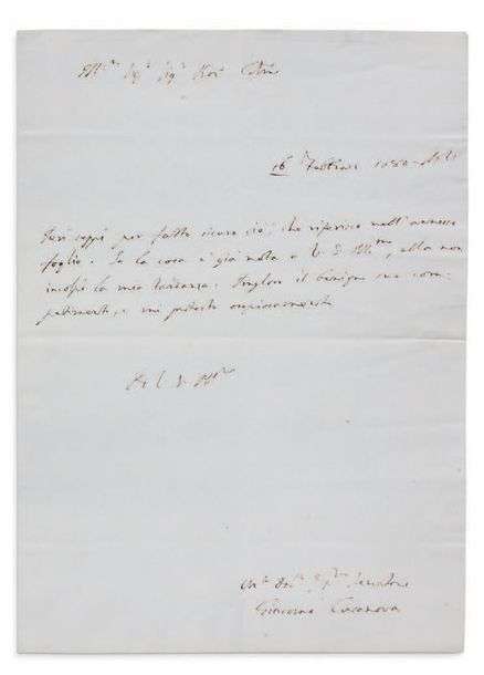 «Ieri seppi per fatto sicuro ciò, che riferisco nell'annesso foglio. Se la cosa è già nota a V.S. Illma, ella non incolpi la mia tardanza. Imploro il benigno suo compatimento, e mi protesto osequiosamente di V.S.