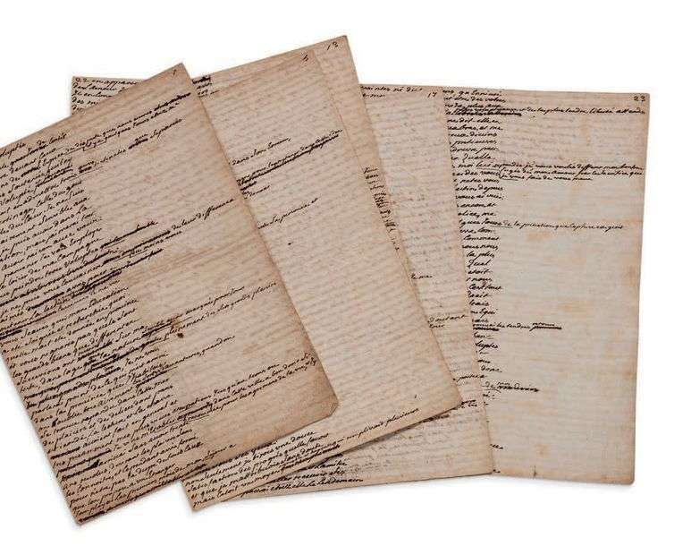 ARCHÉOLOGUE, GRAVEUR ET ÉCRIVAIN MANUSCRIT autographe (incomplet), Les trois Voluptés| 19 pages et quart in-4 sur feuillets doubles (manquent les pages 9 à 12).