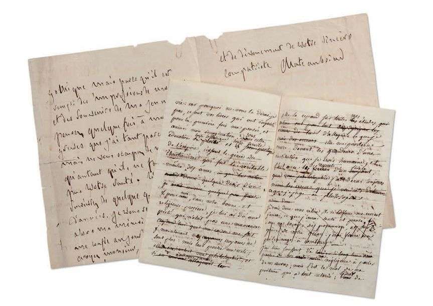 DUBOIS à laquelle Chateaubriand répond (4 p. in-8). Il part malade respirer l'air de son pays. «J'emporte vos ouvrages pour charme de ma solitude, Je les relirai aux lieux où je les ai lus pour la première fois [...] ce sont vos livres qui ont inquiété pour la première fois ma pensée, et animé mon imagination. Sous cette éducation toute soldatesque, toute servile de l'empire, c'est le Génie du christianisme qui fut le véritable maître des âmes, & pour moi, dans notre bonne et religieuse province, je lui ai dû une piété qui n'était pas une manoeuvre.