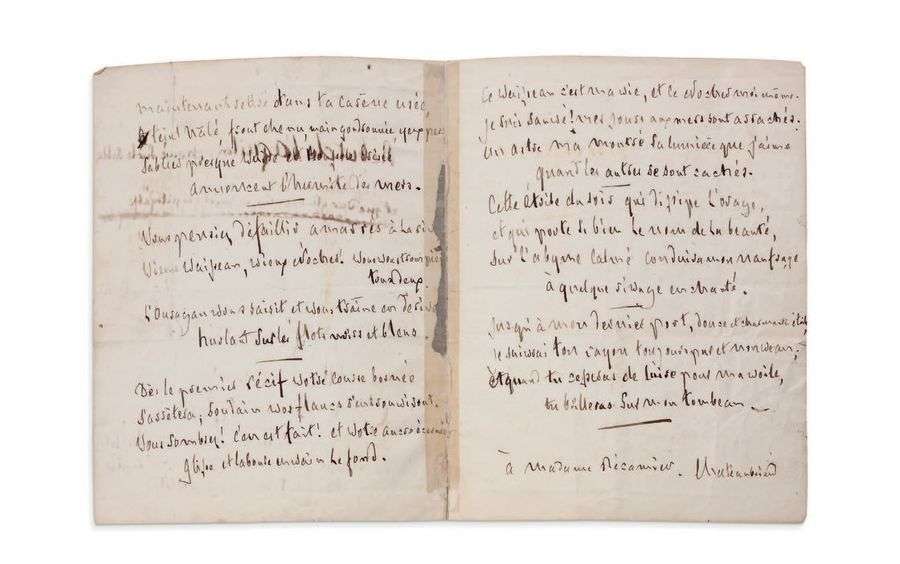 MANUSCRIT autographe signé «Chateaubriand», Le Naufrage, [1831]| 3 pages in-4 (petite déchirure au pli central du bifolium renforcé au papier gommé, avec petits manques touchant la lettre finale de 3 lignes).