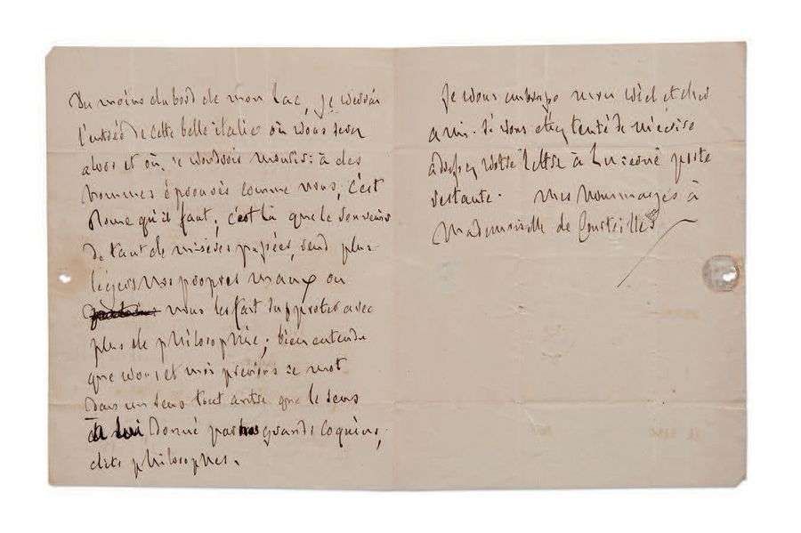 «Allons, mon cher ami, du courage. [...] je pars dan quelques jours pour Basle et je me rends directement à Lugano, afin de voir s'il est possible d'y demeurer: Mde de Ch.