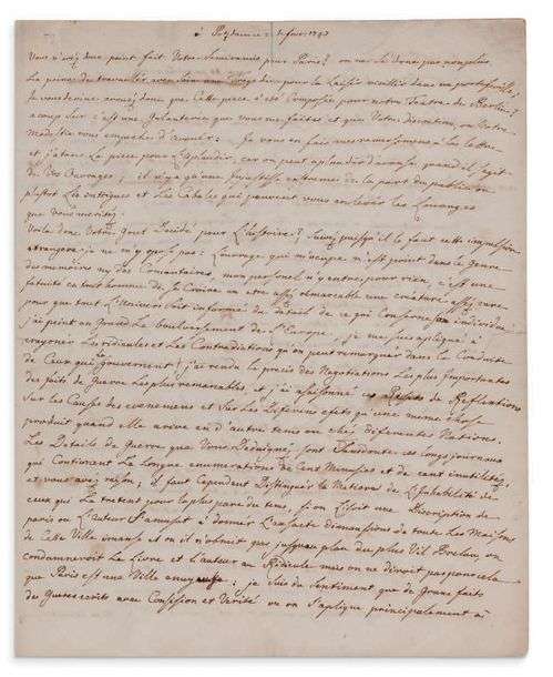 Magnifique lettre du Roi de Prusse à Voltaire, avec ses réflexions sur l'histoire et l'Europe.