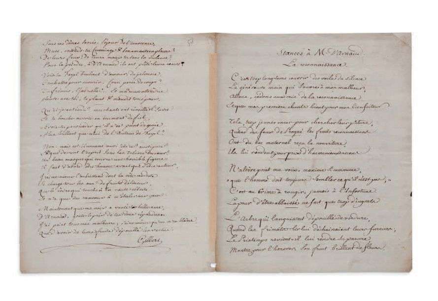 MANUSCRIT autographe signé «Gilbert», Stances à M.