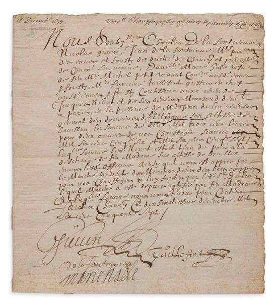 P.S. «De la Fontaine», cosignée par trois autres personnes, Château-Thierry 18 décembre 1657| 1 page in-4.