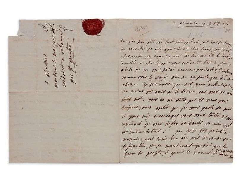 L.A., «ce dimanche soir 8 may» [1774], au marquis de CONDORCET à Ribemont| 3 pages in-4, adresse avec beau cachet de cire rouge à la devise