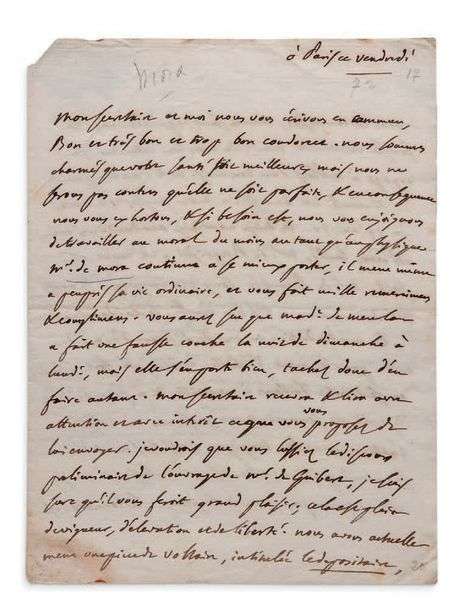 D'ALEMBERT, Paris «ce vendredi» [10 juillet 1772], au marquis de