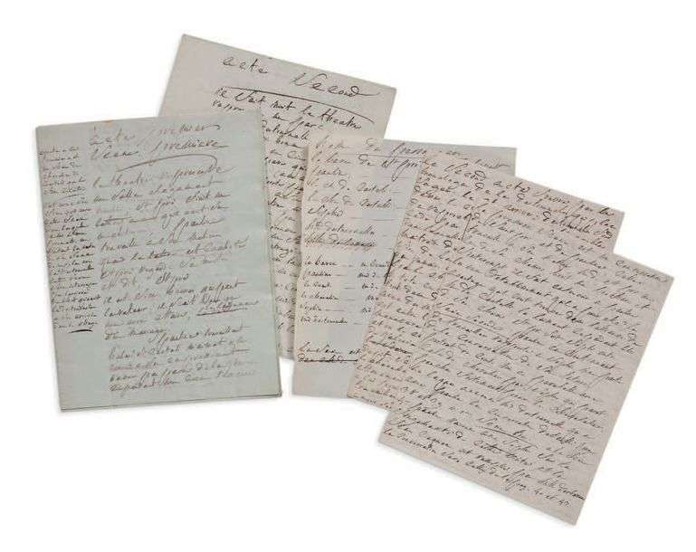 Rare manuscrit d'une des premières oeuvres de Sade, rassemblant le plan et les ébauches d'un drame conçu pour le théâtre privé de Lacoste ou Mazan, intéressant pour sa méthode d'écriture.