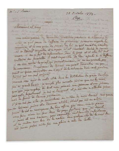 L.A.S. «De Saint Pierre», Paris 28 octobre 1779, [à Pierre-
