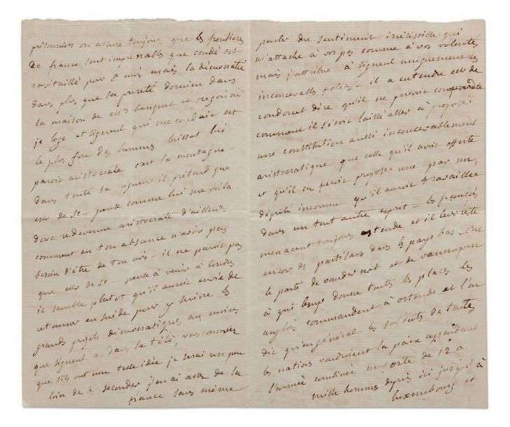 Guerre de décembre 1791 à mars 1792, il se réfugie en Angleterre en août 1792 à l'aide de Mme de Staël, qui vient l'y rejoindre, du 20 janvier au 25 mai 1793. Partie de Douvres le 25, elle écrit cette lettre (restée inconnue) à son réveil le lendemain de son arrivée à Ostende| elle lui en écrira une autre le même jour, à 2 heures de l'après-midi, avant de partir pour la Suisse: «Je vous ai écrit ce que je savais de nouvelles ce matin» (Correspondance générale, t. II-1, p. 105).] «Cela fait bien mal de vous quitter phisiquement et moralement je n'ai jamais tant souffert de ma vie. Je suis arrivée ici avec la fièvre hier à midi, et je me lève seulement à présent pour vous dire adieu et partir, partir par la route d'Allemagne car moi je ne sais pas désobéir à ce que j'aime et j'ai besoin de croire que ma vie lui est nécessaire. Ah la tienne est tout mon bien, tout me le prouve [...] et toute la nature est un éloge pour toi».