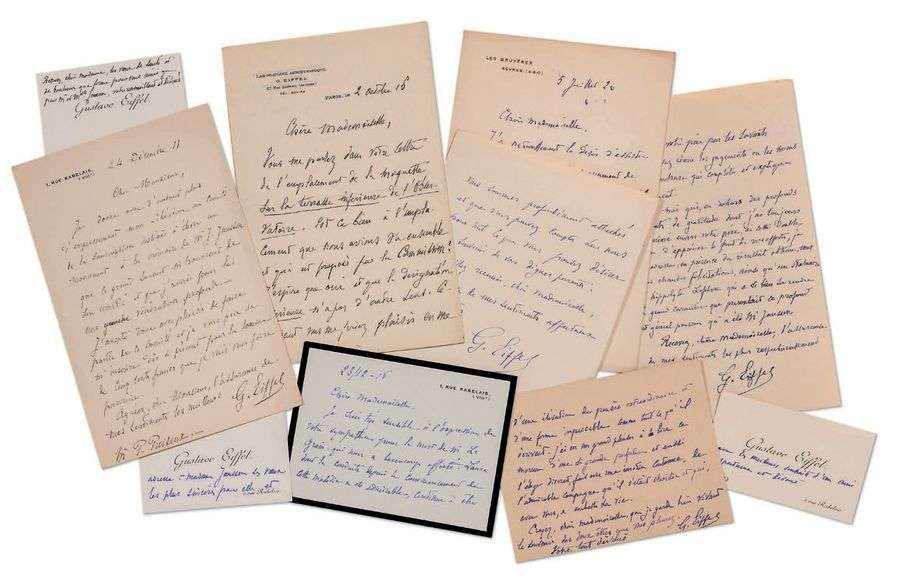 24 décembre 1911. Adhesion au Comité de la souscription pour elever un monument a Janssen: «le grand savant m'honorait de son amitie [...] j'avais pour lui une veneration profonde»... 8 avril 1913, condoleances lors de la mort de Mme Janssen: «Dans des circonstances bien penibles, elle s'est montrée si excellente pour moi ainsi que votre venere pere et vous-même, que j'en garde un souvenir ineffacable [...] tous les deux etaient des êtrès exceptionnels, l'un par son genie scientifique, l'autre par l'elevation de son coeur»... 5 juin 1914. Le petit ouvrage de Mlle Janssen en souvenir de sa mere est exquis. «Quant au discours de votre pere, il est tout simplement admirable, d'une elevation de pensée extraordinaire et d'une forme impeccable»... 2 octobre 1916. A propos de l'emplacement de la maquette du monument a Janssen a l'Observatoire de Meudon. «Quant au socle, il faut qu'il soit très modeste et aussi peu encombrant que possible, puisque c'est la crainte de voir la vue bouchée qui a motive la resistance de l'architecte»... 23 décembre 1916, sur la mort de son gendre Maurice LE GRAIN: «Laure dont la conduite depuis le commencement de cette maladie a été admirable, continue a être très courageuse»... Sèvres 5 juillet 1920, il veut assister «a la reunion pour le monument de votre pere»... 6 novembre 1921. Longue lettre sur la brochure de l'inauguration du monument de Janssen, et la relecture des discours des savants «venus lui rendre hommage, en rappelant tous les travaux scientifiques qui graveront son nom dans la memoire des hommes», et felicitations au statuaire Hippolyte Lefebvre, «qui a si bien su rendre le grand caractere que presentait ce profond et genial penseur qu'a été M. Janssen»... On joint 3 cartes de visite autographes à Mme Janssen.