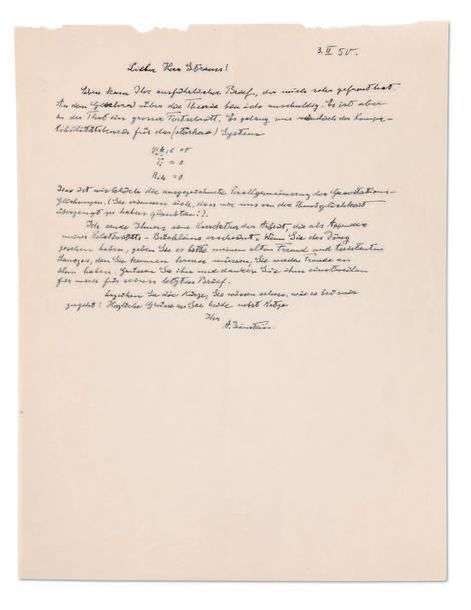 L.A.S. «A Einstein», 3 février 1950, à Ernst Gabor STRAUS| demi-page in-4| en allemand.