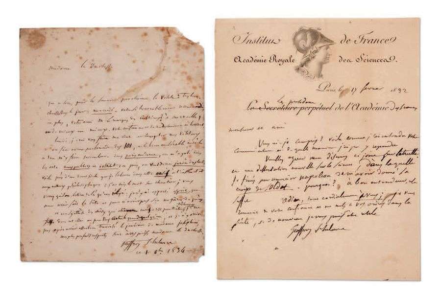 2 L.A.S., Paris 1832-1834| 1 page in-4 à en-tête et vignette Institut de France.