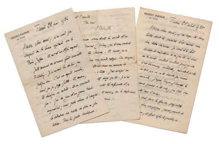 2 L.A.S., Tunis 1924-1925, à un ami| 4 pages in-8 chaque à en-tête Institut