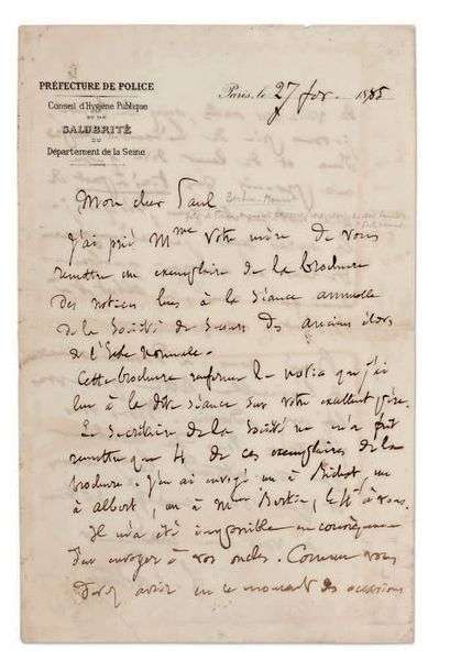 L.A.S., Paris 27 fevrier 1885, à Paul