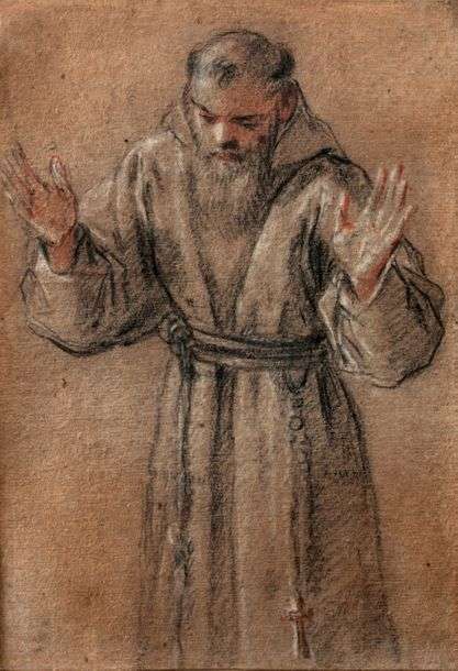 Pierre noire, sanguine et rehauts de blanc sur papier brun 26 x 18 cm