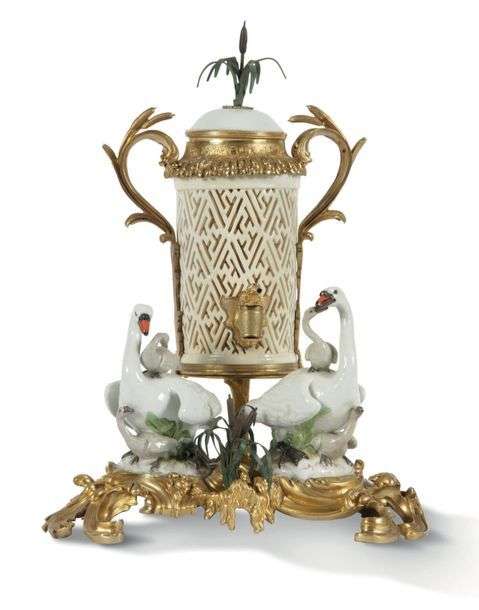 FONTAINE DE TABLE en porcelaine de la Chine ornée de cygnes en porcelaine de Meissen Epoque Louis XV - vers 1750