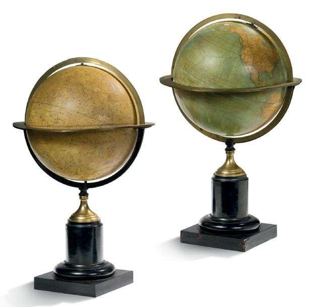 GLOBE TERRESTRE ET SPHÈRE CÉLESTE Maison Delamarche à PARIS. 25 rue Serpen