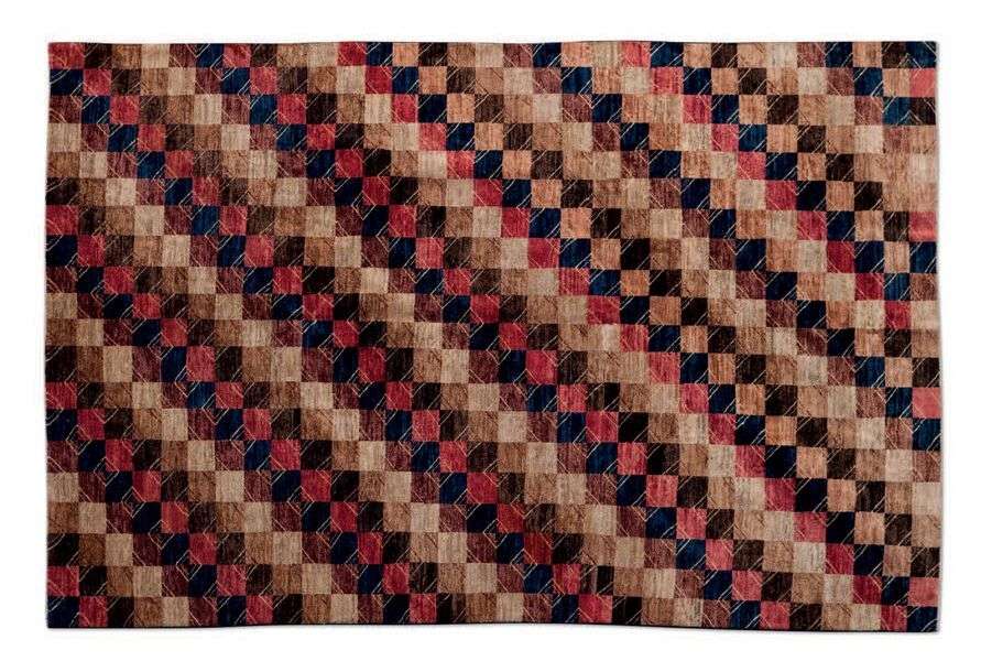 TAPIS DE LAINE à décor géométrique, sur trame de coton.