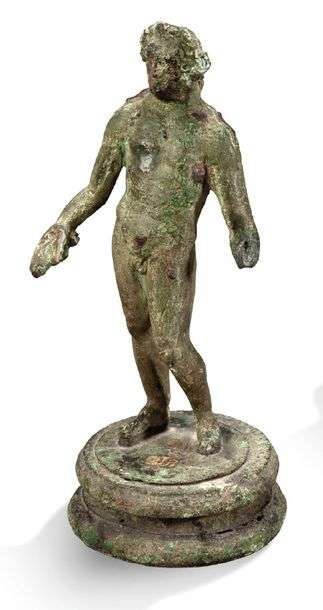 La statuette représente soit un éphèbe, soit le dieu Hercule (Heraclès). Il est debout sur une base circulaire. La jambe droite soutient le corps, la jambe gauche est légèrement fléchie. Il est coiffé d’une couronne de laurier.
