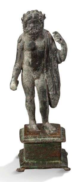 A ROMAN BRONZE FIGURE : JUPITER ON PIEDESTAL. CIRCA 1ST - 3RD CENT A.D.