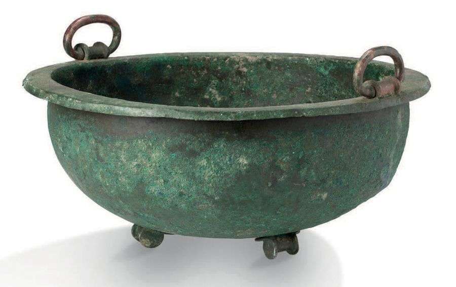 AN ETRUSCAN BRONZE BRASERO. CIRCA 4TH CENT B.C.